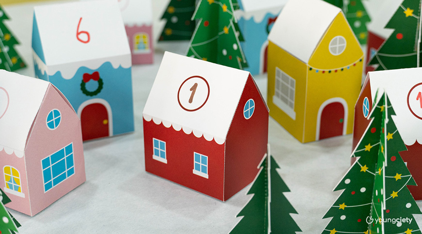 Christmas Advent Calendar หรือ ปฏิทินกล่องของขวัญต้อนรับเทศกาลคริสต์มาส เป็นกิจกรรมซึ่งเอาไว้ใช้นับเวลาก้าวเข้าสู่ช่วงเวลาสำคัญ โดยเราจะซ่อนของขวัญขนาดเล็กไว้ในกล่องรูปบ้านแสนน่ารัก เพื่อเซอร์ไพรส์เด็ก ๆ ในทุก ๆ วัน จนถึงวันคริสต์มาสเลย หรือจะใช้เป็นกล่องสุ่ม ไว้ให้เด็ก ๆ เลือกก็ได้ค่ะ เป็นกิจกรรมครอบครัว ที่ทั้งสนุก ลุ้น และเซอร์ไพรส์ ไปด้วยกันได้ทั้งครอบครัวในกิจกรรมเดียว แถมเปิดครบแล้วยังได้เมืองกระดาษสวย ๆ ไว้ตั้งโชว์ด้วย เห็นผลงานหน้าตาน่ารักขนาดนี้ บอกเลยว่าทำง่ายมาก เพราะเรามี Pattern มาให้แล้วเรียบร้อย สามารถดาวน์โหลด Pattern Christmas Advent Calendar ปฏิทินกล่องของขวัญ พร้อมอ่านบทความ และวิธีทำได้เลย