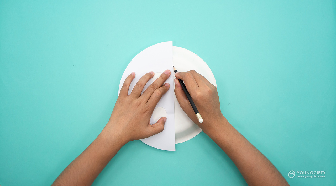 แนะนำให้ใช้จานกระดาษขนาด 9 นิ้วนะคะ เพราะจะพอดีกับใบหน้าของเด็กและเป็นขนาดเดียวกันกับ Pattern ของเราด้วยค่ะ แต่หากบ้านไหนมีจานกระดาษที่เล็กหรือใหญ่กว่า 9 นิ้ว ก็สามารถนำ Pattern ของเรามาประยุกต์ใช้ได้เช่นเดียวกันค่ะ
